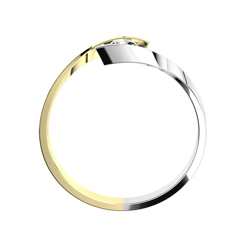 Zásnubný prstienok skrášľuje dokonalý ligot drahého kameňa s veľkosťou 3,5 mm, ktorý nemožno prehliadnuť. Tento model vyžaruje úplne oslňujúci lesk. Zlatý prsteň je netradične zhotovený vo farebnej kombinácii žltej a bielej. Sbalit popis