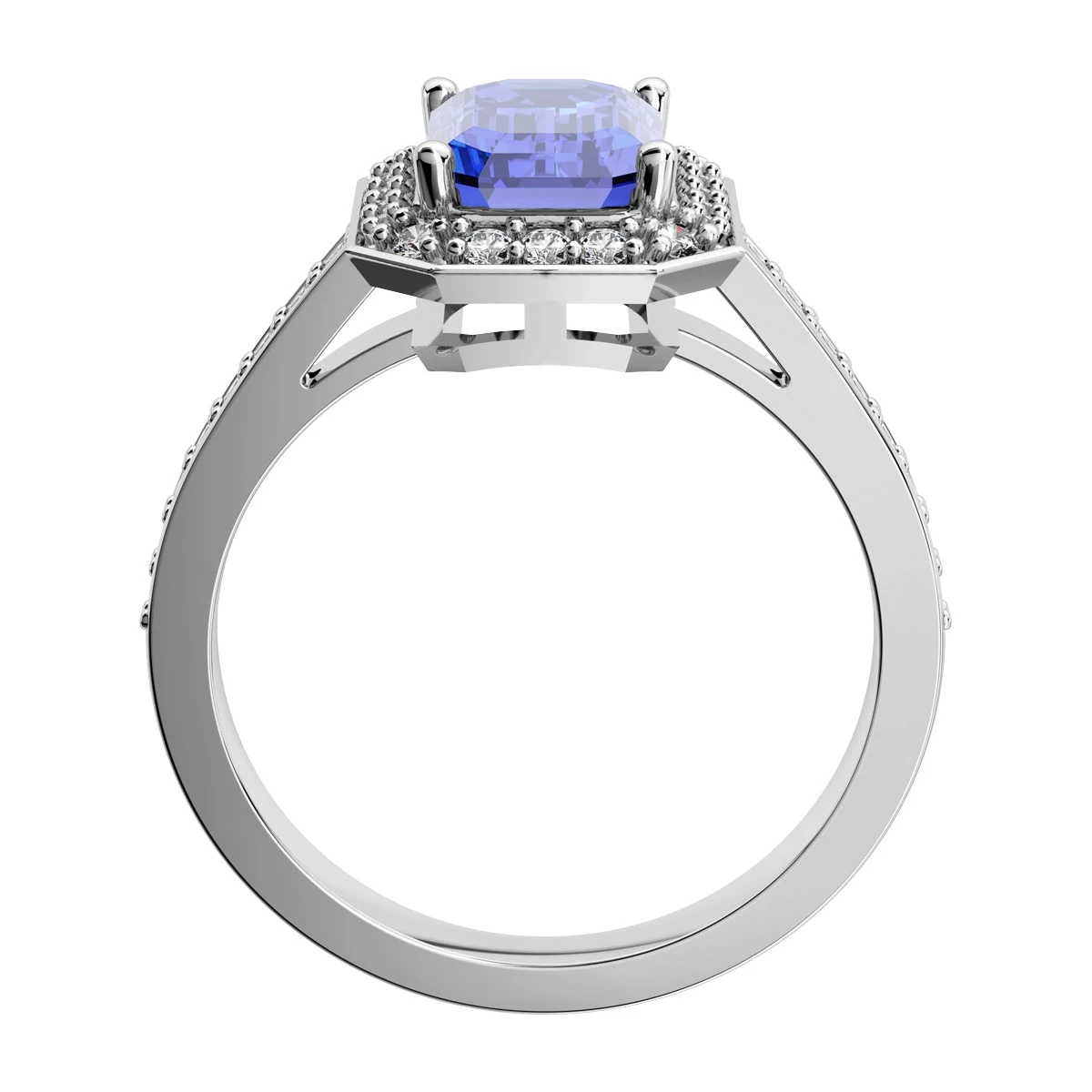 Veľkolepý zásnubný prsteň Olivia je vyrobený z bieleho zlata. Centrálne kameň nazývaný tanzanit je osemuholníkového tvaru o rozmere 6x8 mm. Pýši sa navyše nádhernou modrou farbou kvality AAA, disponuje 1,600 karáty (ct.) A čistotou IF. Okolité brilianty Si sú vo veľkosti 34x1,2 mm. Pokiaľ má Vaša priateľka rada extravaganciu alebo ju chcete venovať niečo naozaj výnimočné, tak neváhajte. Sbalit popis