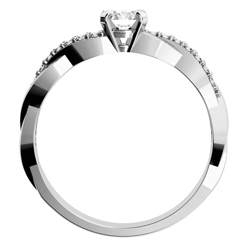Zásnubný prsteň z bieleho zlata, ktorým jednoznačne podčiarknete krásu svojou snúbenice. Zásnubný prsteň Luciana z bieleho zlata je plný lásky a nežnosti. Prsteň zdobí 14 briliantov s veľkosťou 1,2 mm tiahnucich sa v jednej línii, ktorú zároveň prepletá línie druhá bez kameňov. Prsteňa dominuje kameň o veľkosti 3 mm. Celková hmotnosť kameňov je 0,212 karátov. Sbalit popis