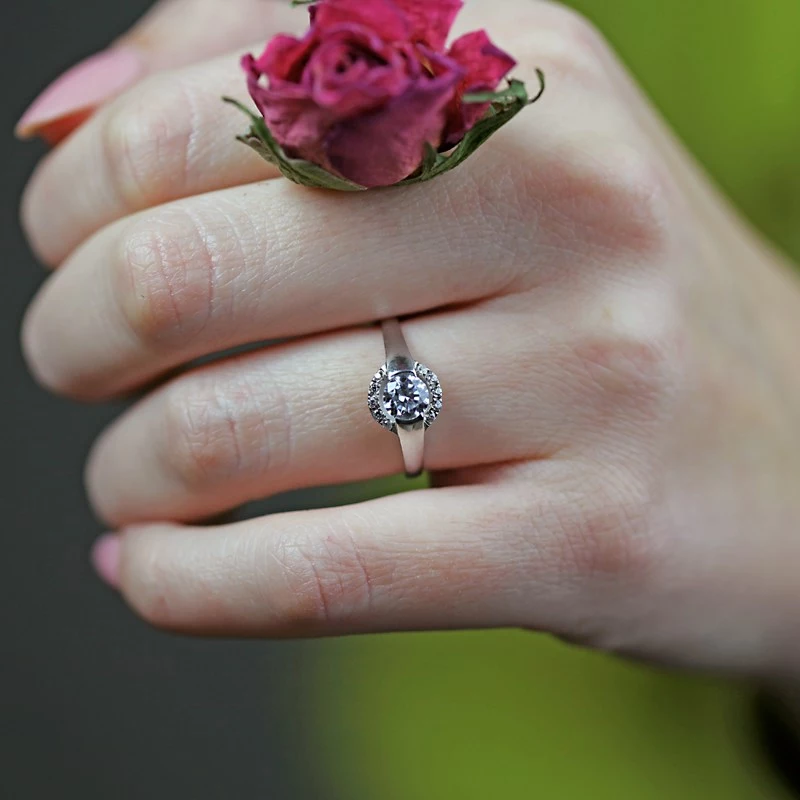 Skvostný zásnubný prsteň, s ktorým určite nešliapnete vedľa! Nádherný prsteň Sofia je vyrobený z bieleho zlata. Tento zásnubáček je osadený briliantmi o veľkosti 5 mm (0,51 ct.) A 10x 1,25 mm (0,09 ct.). Ak hľadáte prsteň, ktorý je honosný a neobvyklý, je tento úžasný kúsok jasnou voľbou. Navyše, ide skvele kombinovať s prsteňom snubným, tak neváhajte! Sbalit popis